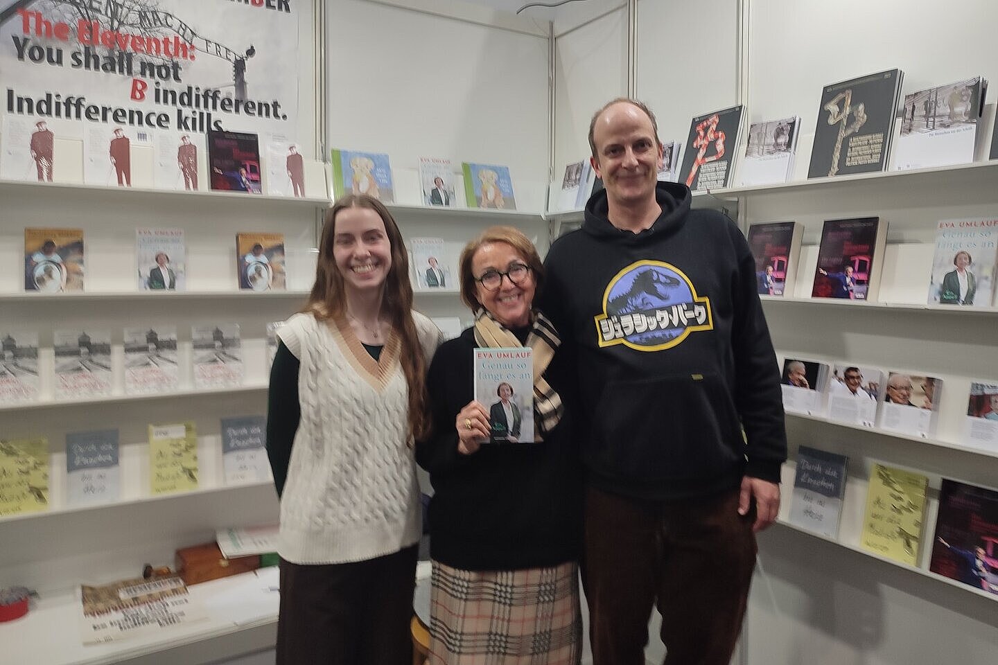 Ocalała z Auschwitz i prezydent Międzynarodowego Komitetu Oświęcimskiego dr Eva Umlauf zaprezentowała na wspólnym stoisku oraz podczas dwóch wieczornych spotkań autorskich swoją nową książkę „Genau so fängt es an”, w której – z perspektywy Ocalałej oraz w kontekście własnych wspomnień i doświadczeń – komentuje współczesne wydarzenia polityczne.